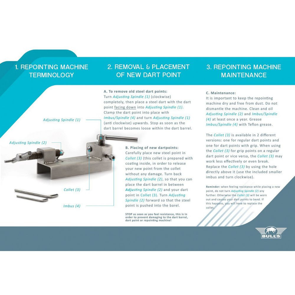 Bull's Repointing Machine este un dispozitiv conceput pentru a face schimbarea varfurilor de metal ale sagetilor de darts un joc de copii. Este un echipament esential pentru pasionatii de darts. Aceasta masina este proiectata pentru a indeparta cu usurinta varfurile vechi si pentru a insera varfurile noi in sageti. Conceput cu utilizabilitatea in minte, simplifica procesul de schimbare a varfurilor de darts, facand aceasta sarcina obositoare simpla si eficienta. Bull's Repointing Machine include o piesa interna standard pentru varfuri, care poate fi inlocuita cu un adaptor special conceput pentru varfuri zimtate. Aceasta flexibilitate permite utilizatorilor sa isi personalizeze varfurile sagetilor, fie ca folosesc varfuri traditionale sau zimtate. Masina se remarca prin versatilitatea si confortul sau, asigurand un plus valoros oricarui echipament de darts. Cu toate acestea, merita mentionat ca utilizarea Bull's Repointing Machine necesita o oarecare experienta. Desi este proiectata pentru a fi usor de utilizat, un incepator ar putea avea nevoie de ceva timp pentru a se obisnui cu functiile masinii. Cu practica si rabdare, Bull's Repointing Machine poate deveni o parte indispensabila a trusei tale de darts.