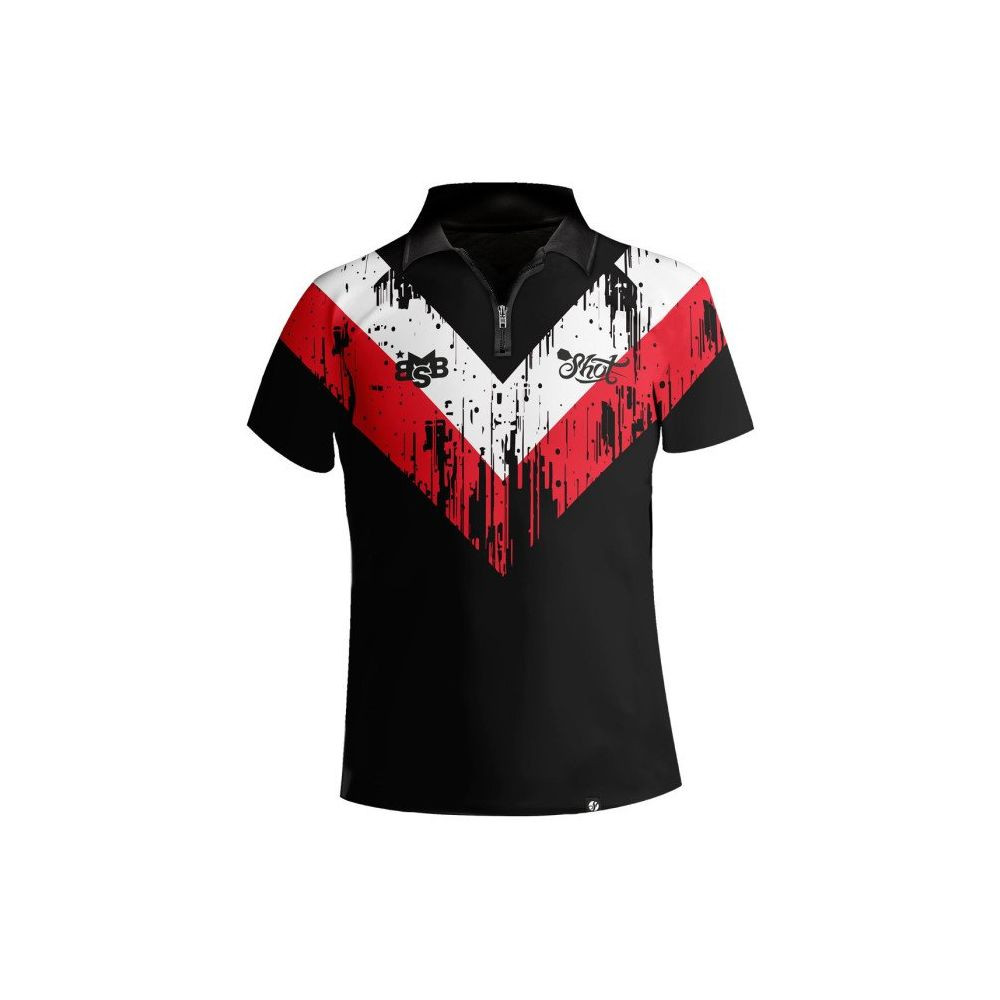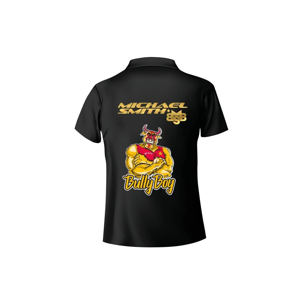 Tricoul de darts Michael Smith este realizat dintr-un material sportiv de inalta calitate, cu greutate medie. Se usuca rapid si este respirabil, oferind confortul si flexibilitatea necesare in timpul jocului. Dispune de un guler subtire, deschidere cu fermoar la gat si un buzunar la piept. Poarta logo-urile MSB & Shot Darts, precum si logo-ul Bully Boy pe spate. Tricouri unisex disponibile in marimi intre S si 6XL.