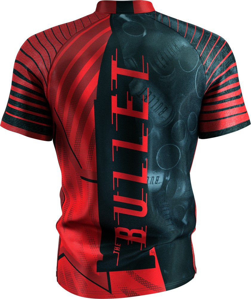 Tricoul are un design indraznet, in doua nuante: pe o parte, o culoare rosie vibranta cu o stea, simbolizand victoria sa de la Campionatul Mondial din 2014. Cealalta parte este eleganta, de culoare neagra, cu grafice de darts, referindu-se la porecla sa. Pe partea din spate, cu litere mari si rosii, se afla cu mandrie inscriptia „The Bullet”, care este la fel de dinamica si impactanta ca si prezenta lui Stephen Bunting pe linia de aruncare.