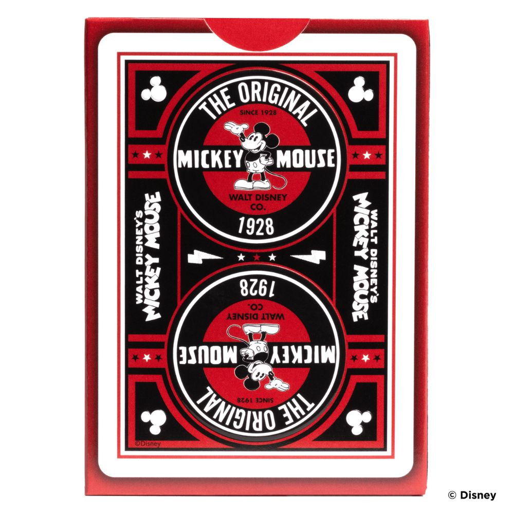Carti de poker Bicycle Disney Classic cu imaginea lui Mickey Mouse, acoperite cu plastic si cu spatele rosu.