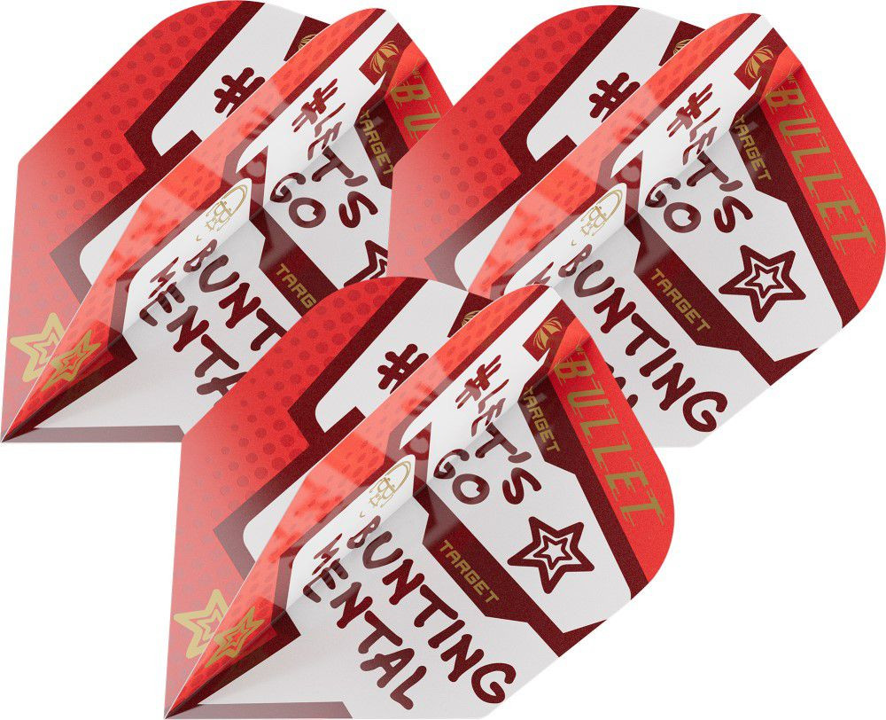 Stephen Bunting, campionul PDC Masters 2024, a colaborat pentru crearea acestui produs, care se remarca printr-o schema de culori vibranta in rosu. Fluturasii Pro Ultra Bunting poarta cu mandrie sloganul iconic scandat de fanii sai in timpul meciurilor: „Let’s Go Bunting Mental!”. Fabricati dintr-un material de 100 microni, fluturasii sunt imprimati cu spot UV pentru a imbunatati aderenta pe tija si pentru a accentua aspectul estetic.