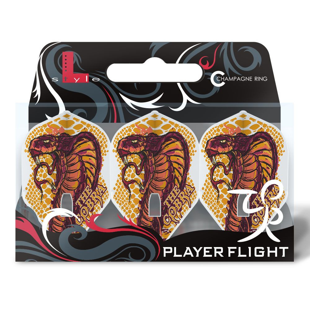 Fluturasi darts L-Style Pro L1 jucator - Jelle Klaasen V4 Cobra Standard, forma lata -Ideale pentru aruncarile cu bolta.Dimensiunea: L1 Standard - 36,5 mm, 44 mm lung Greutate: 0,7 g Grosime: 0,3 mm Forma: Standard Producator: L-Style ( Japonia) Cu inelele de prindere unice L-Style „Champagne Ring”, fluturasii sunt perfect atasati de tija. Capetele fluturasilor si locurile importante sunt intarite impotriva deteriorarii. Aripile futurasilor sunt la un unghi de 90 de grade unul fata de celalalt pentru un zbor perfect. Pentru a ramane asa, merita sa folositi un toc L-Style pentru ele, sau orice portsageti in care setul de sageti pot fi depozitate convenabil fara a le demonta. Pentru a utiliza fluturasii, va recomandam inelele Champagne Ring si tijele L-Style. Pachetul contine 3 fluturasi, fara inelele de prindere.