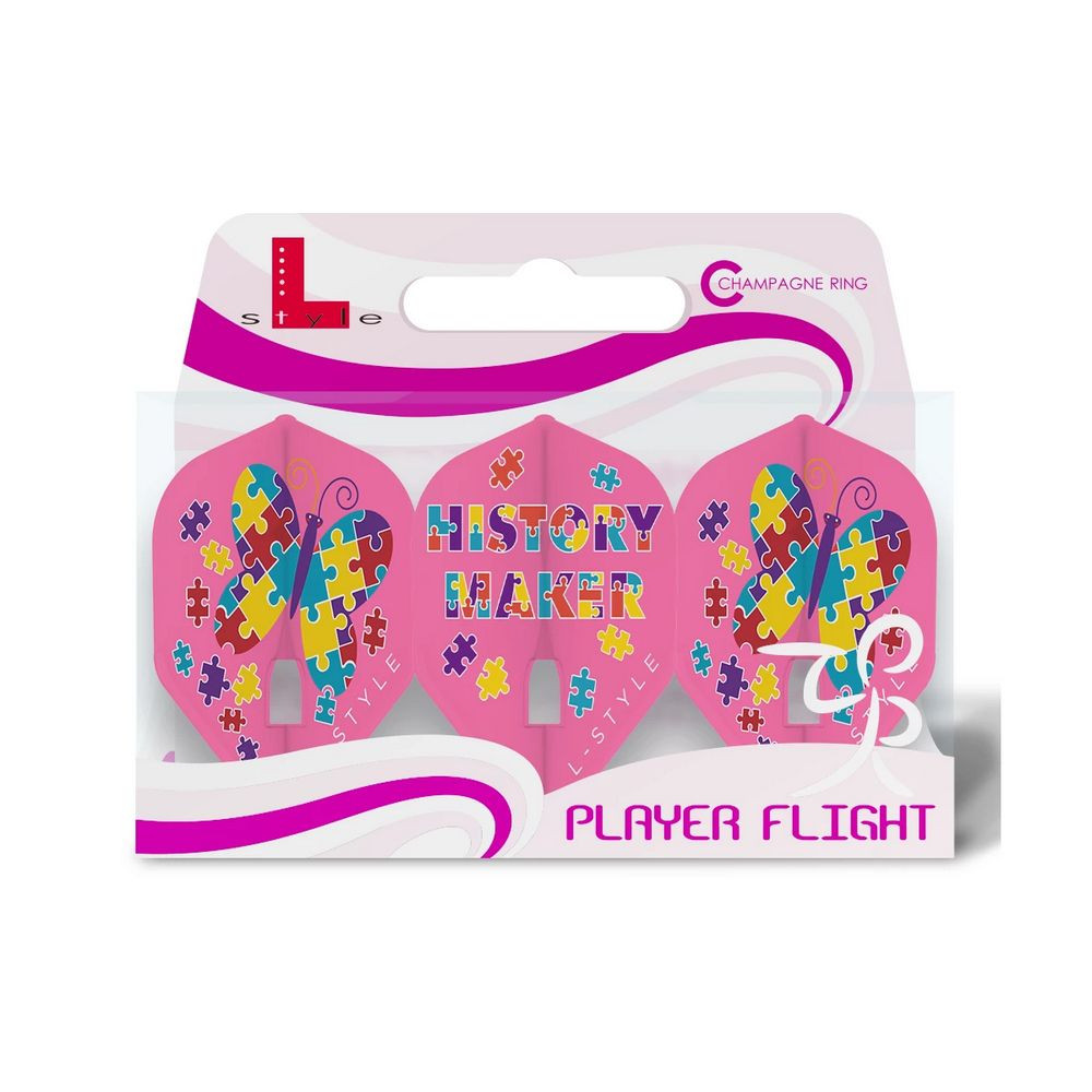 Acesti fluturasi premium de calitate japoneza pot fi fixati perfect pe tija cu ajutorul inelelor speciale L-Style „Champagne Ring”. Marginile si zonele importante ale fluturasului sunt ranforsate pentru o rezistenta mai mare la uzura. Aripile fluturasului sunt dispuse la un unghi de 90 de grade pentru un zbor stabil si precis. Pentru a pastra forma ideala, se recomanda utilizarea unui toc L-Style sau a oricarui alt toc in care setul de darts poate fi depozitat fara a fi dezasamblat.