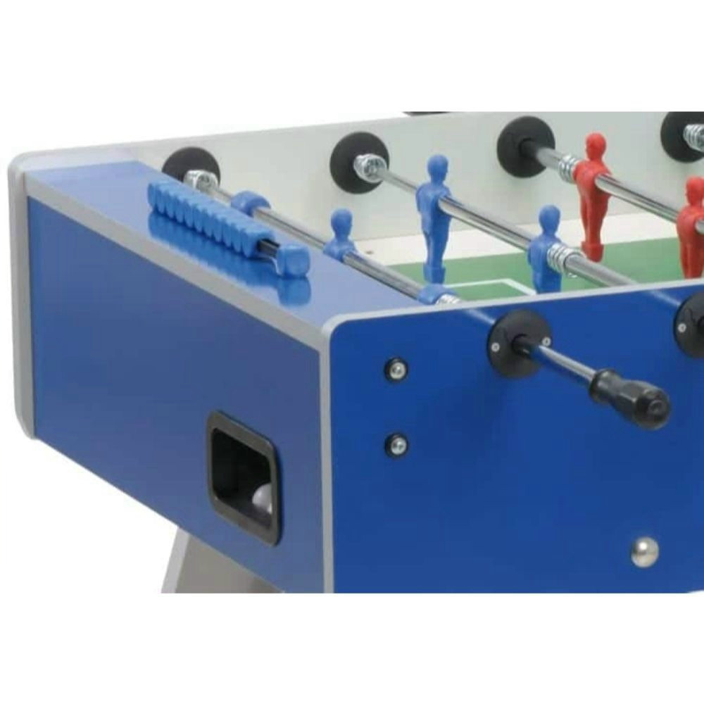 Garlando Master Pro pentru exterior, pliabil, 5' Rezistent la intemperii, pentru exterior, realizat din materiale speciale. Picioare pliabile - masa profesionala mica, care economiseste spatiu, datorita picioarelor pliabile pentru o depozitare usoara. Master Pro respecta reglementarile europene de siguranta. Carcasa este realizata din tabla stratificata impermeabila de 20 mm grosime, acoperit cu un strat de plastic si un adeziv special impermeabil pentru o izolare perfecta. Culoare: albastru si argintiu Picioare metalice acoperite cu material impermeabil. Tija de otel cu diametrul de 16 mm acoperita cu crom antirugina in trei straturi. Vopseaua aplicata pe suprafata acestora este speciala si deosebit de rezistenta la ciobire. Utilizarea rulmentilor accelereaza foarte mult viteza jocului, in timp ce incheieturile jucatorilor nu sunt supuse unui stres mare. Parametri tehnici: Tija normala teren impermeabil laminat. Culoare: albastru, argintiu Accesorii: 10 mingi de fotbal albe. Lungime: 144cm Latime: 76cm