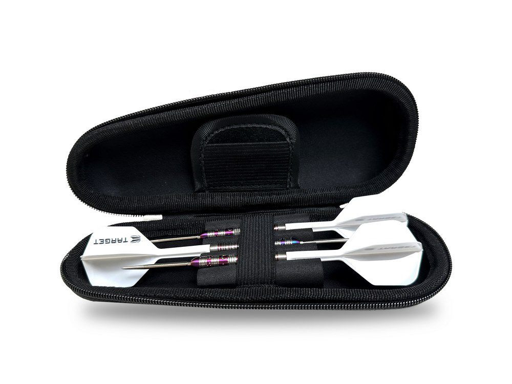 Husa cu design dur, astfel incat setul poate fi stocat complet echipat, fara a demonta fluturasii. Imaginea este ilustrativa, tokul nu include sageti de darts si alte accesorii!