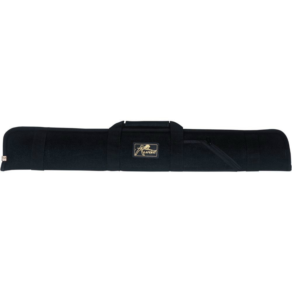 Husa tac Laperti De luxe 1 + 2, negru, Husa pentru umar fabricata de Buffalo, potrivita pentru 1 maner si 2 shafturi. Design elegant cu curea lata de umar. Exterior elegant din imitatie de piele. in interior, tacurile si shafturile sunt inchise in compartimente laterale cu velcro.