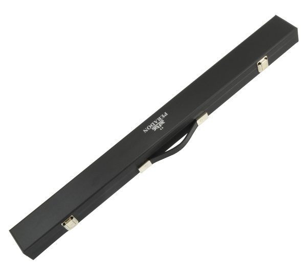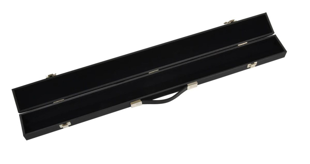 Husa pentru tac 1/2 acoperita cu piele artificiala neagra si cu cleme cromate. In interior, este prevazuta cu o baza de burete neagra pentru a proteja tacul.
