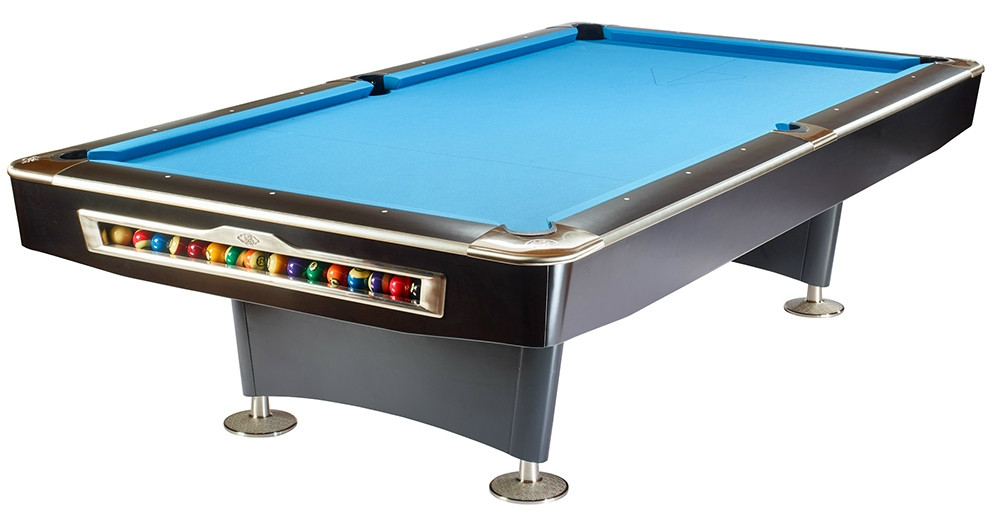 Masa biliard Olio 8' negru Cu colturi metalice cromate, incastrate, confectionate dintr-un material special, extrem de rezistent cu picioarele reglabile cu suprafata durabila si rezistenta, din lemn laminat, cu lac lucios matasos. Ardezie braziliana de 25 mm Zona de joc: 224cm * 112cm