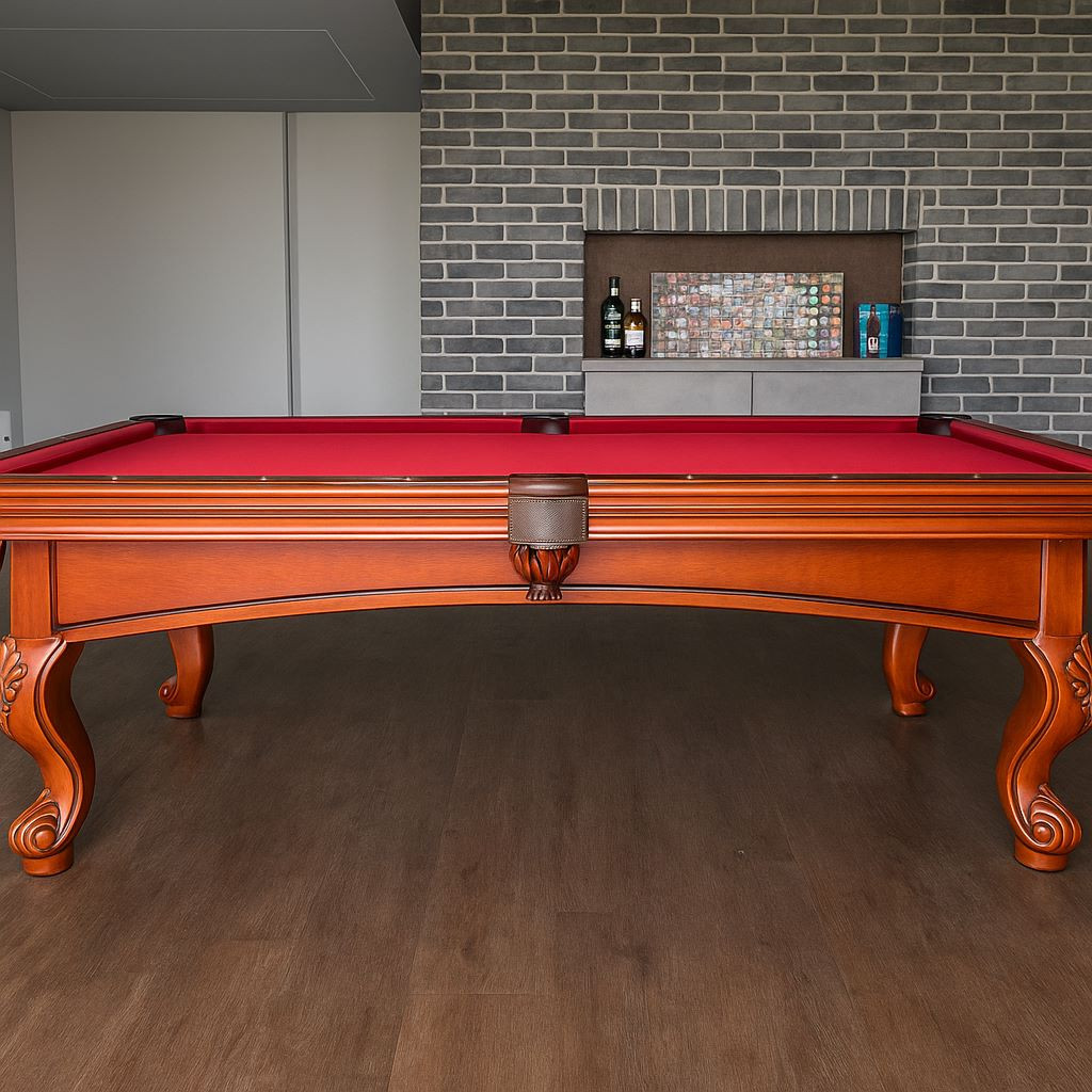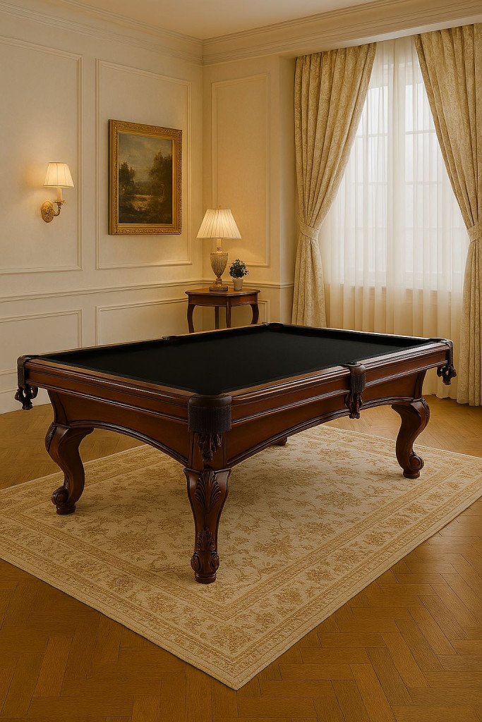 Masa de biliard Savona 8' Stilul mesei este determinat de liniile simple. Buzunare din piele de culoarea nucului se contopesc la culoarea mesei. Insertiile in forma de diamant in partea superioara a mesei, ajuta jucatorii pentru determinarea unghiului de lovire. Masa de biliard este din lemn masiv cu mante k66 si cu placa de ardezie din trei bucati.