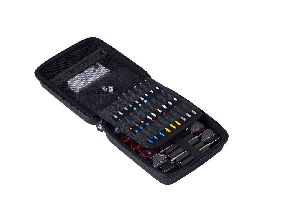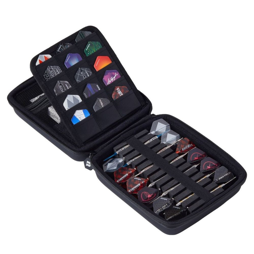 Fiecare geanta vine cu spatiu suficient pentru a stoca set-ul de darts complet asamblat, suporturi special concepute pentru fluturasi si tije si un fermoar in care sa stocati accesorii suplimentare!