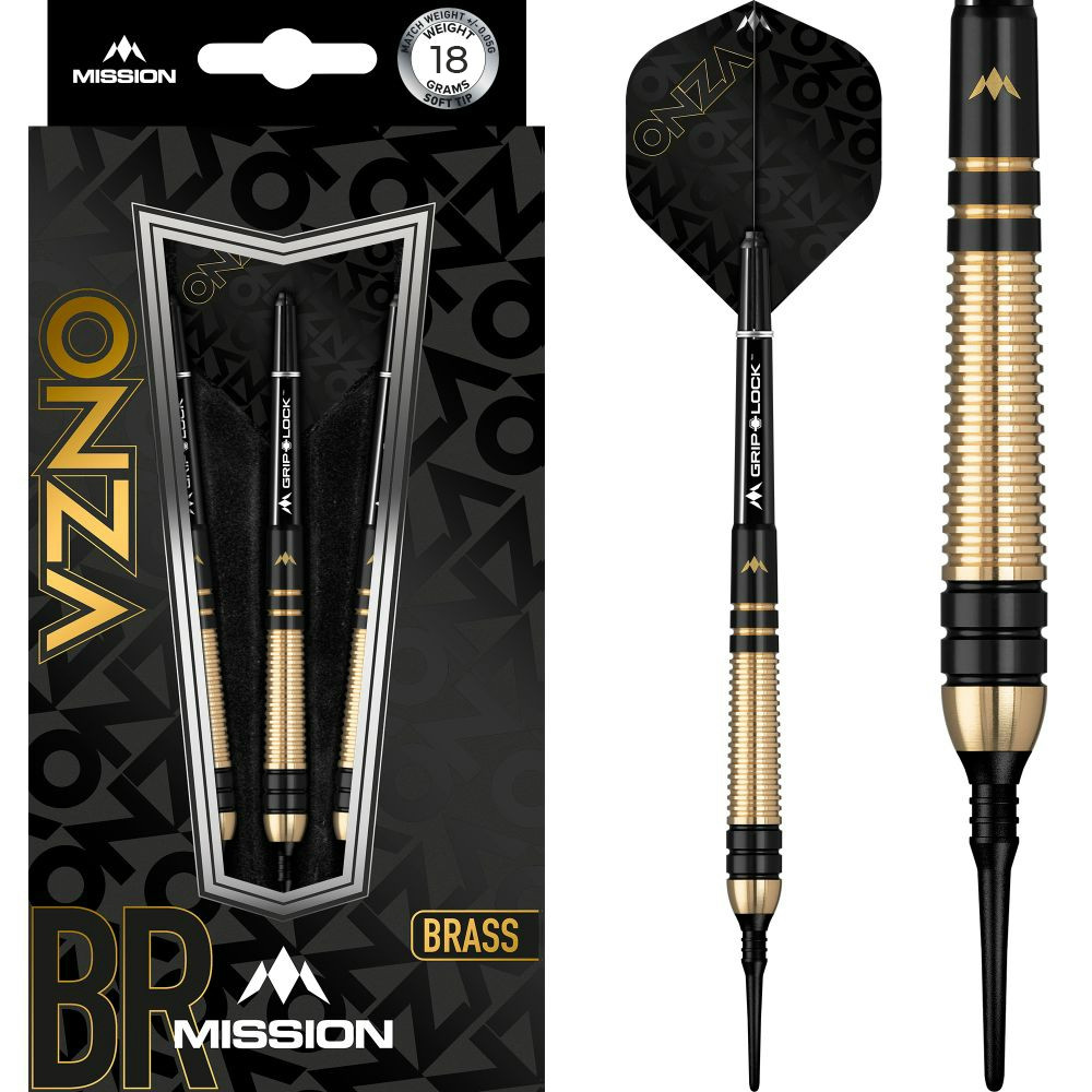 Sageti darts Mission soft Onza M2, 18g alama  grosime corp: 8 mm Lungime corp: 56 mm  Greutatea: 18 grame Material: cupru Categorie: Incepator Culoare: auriu , negru Tija: Grip Lock inele S-Lock, negru Fluturasi: 100 microni, negru varf: negru, 2BA, plastic Set 3 buc