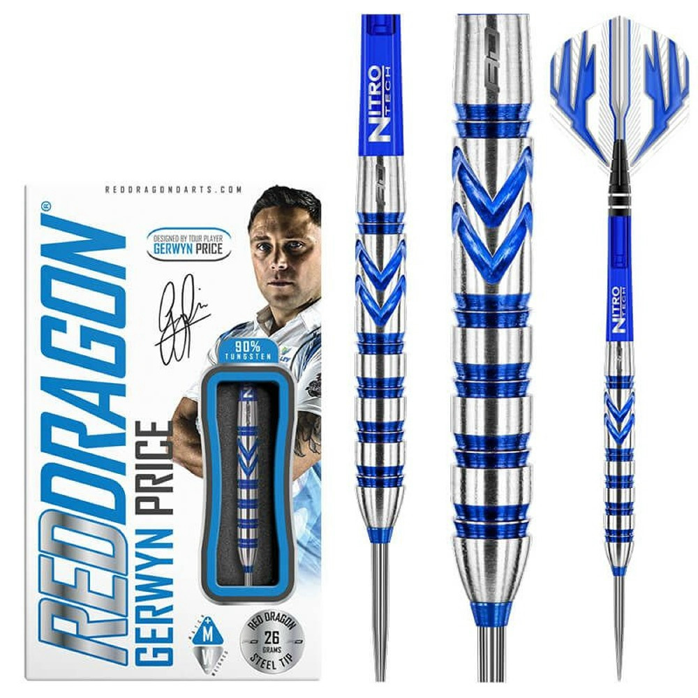 Sageti Darts RedDragon steel Gerwyn Price 90% tungsten 26g Gerwyn 'Iceman' Price a atras atentia producatorului la Campionatul Mondial PDC 2015, in care a jucat o lupta stransa impotriva lui Peter Wright. Fostul jucator de rugby de atunci, este in ascensiune datorita acestui set inalta calitate. Gravura unica Shark Tooth (dinte de rechin) o face un set cu adevarat special.cu aliaj de tungsten 90%, Set profesional care permite abaterea la greutate de +/- 0,1 grame. lungime corp: 6,85 mm lungime corp : 50,8 mm greutatea corpului: 26 grame Continut de tungsten: 90 % Categoria: Profesional culoare: Agrintiu si albastru Tije: 1 set Nitrotech Policarbonat Tije ( medi, 42 mm lungime) fluturasi: 1 set Hardcore extra gros fluturasiak Varf: neted, Agrintiu lungime normala Sageti 3 bucati. La acest set nu se poate acorda extra reducere. Nici revanzatorilor, si nici pentru jucatori. Varfurile de otel se foloses exclusiv la bordurile din hartie presata sau din fibre vegetale, a nu se folosi pe borduri traditionale . Pe aparatele electrice cauzeaza daune ireparabile.