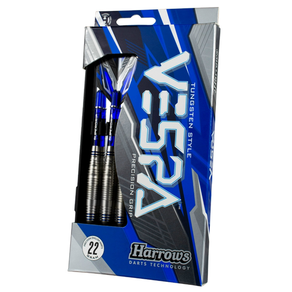 Set darts Harrows steel 22g, Vespa BRASS A sosit Vespa, cea mai noua serie Harrows cu corp din cupru. Combinatia de puncte de prindere inelara si curbata spre interior ca niste dinti de rechin, caracterizeaza designul corpului, care a fost placat cu argint mat pentru a semana cu sagetile din tungsten. - Grosime corp: 9,20 mm - Lungime corp: 57,00 mm - Greutate corp: 22 grame - Material: cupru - Categorie: începător - Culoare: argintiu - Tija: Supergrip midi albastru - Fluturas: Harrows Prime Vespa - Varf: negru simplu, lungime normala - Ambalajul contine 3 sageti.