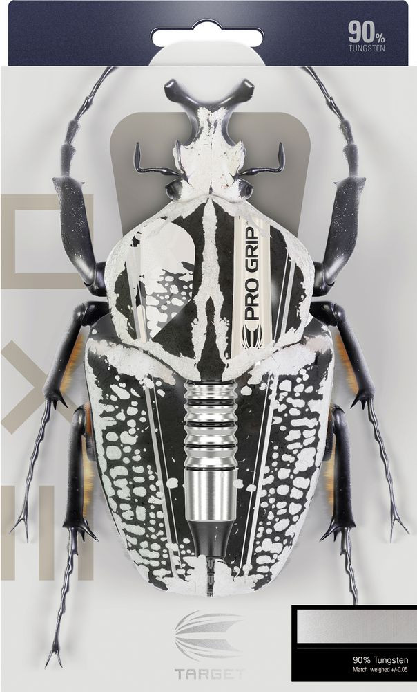 Colectia de produse EXO darts, care asigura un echilibru perfect intre greutate si supletea corpului, are un maner simplu, dar elegant, cu crestaturi radiale. Corpul, fabricat in proportie de 90% din tungsten, ofera jucatorilor o precizie si un control sporite la fiecare aruncare. Tehnologia de varf Swiss Point permite schimbarea usoara a varfurilor cu ajutorul instrumentului inclus.