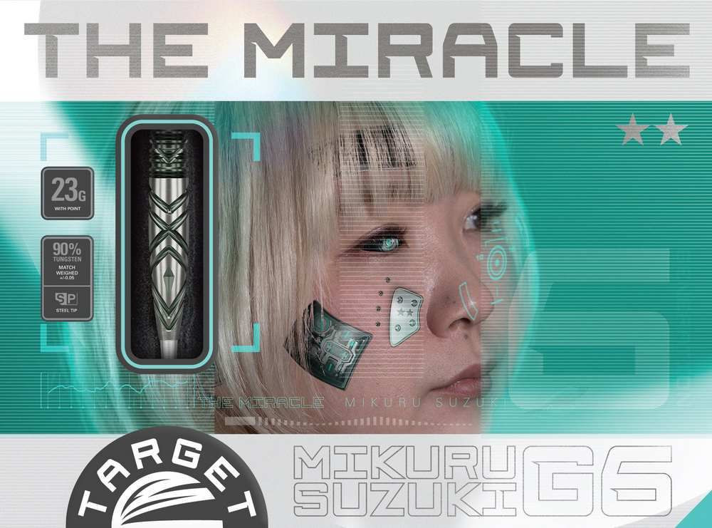 A sosit cea mai noua sageata a lui Mikuru Suzuki, Miracle G6, dezvoltata in colaborare cu campioana mondiala. Miracle G6 nu este doar estetic impresionanta cu culoarea sa verde si taieturile asemanatoare diamantului, ci reprezinta si cel mai inalt nivel tehnologic. Adancile taieturi inelare din zona de prindere si taieturile complexe ascutite asigura o prindere ferma la varfurile degetelor, imbunatatind controlul si stabilitatea. Invelisul verde elegant, care este culoarea caracteristica a lui Suzuki Mikuru, impreuna cu taieturile de tip diamant care inconjoara partea frontala a corpului, ofera un aspect sofisticat. Noul si imbunatatit THE MIRACLE G6 a luat nastere!
