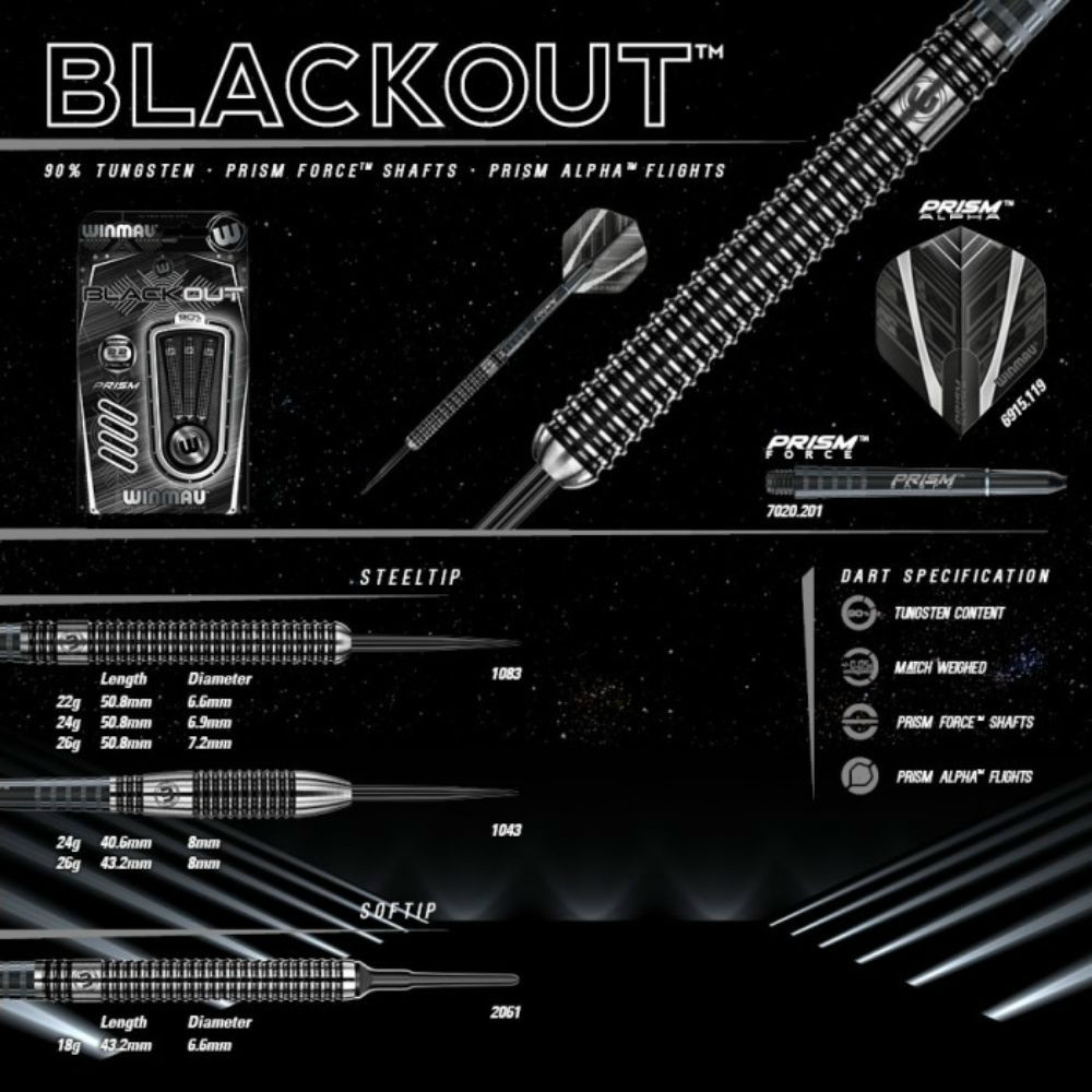 Set darts Winmau steel BLACK OUT 90% wolfram 24g