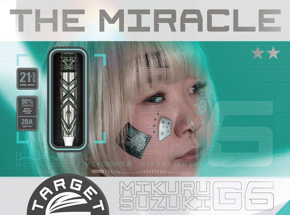 A sosit cea mai recenta sageata a lui Mikuru Suzuki, Miracle G6, dezvoltata cu participarea campioanei mondiale. Miracle G6 nu este doar estetic impresionanta cu culoarea sa verde si taieturile asemanatoare diamantului, ci si din punct de vedere tehnic reprezinta cel mai inalt nivel. Zona de prindere are taieturi adanci in forma de inel si taieturi complexe si ascutite care asigura o prindere puternica pe varfurile degetelor, imbunatatind controlul si stabilitatea. Stratul verde elegant, culoarea caracteristica a lui Suzuki Mikuru, impreuna cu taieturile asemanatoare diamantului care inconjoara partea frontala a corpului, confera un aspect sofisticat. Astfel a aparut THE MIRACLE G6 imbunatatit.