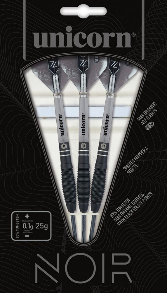 Linia de produse Unicorn Noir darts optimizeaza eleganta si stilul. Sunt fabricate din 90% wolfram, cu un design de precizie si acoperite cu titan-nitrid negru, gravate cu laser cu sigla Unicorn. Aceste sageti sunt echipate cu tije Unicorn Gripper, fluturasi AR Ultrafly si varfuri revolutionare Volute.