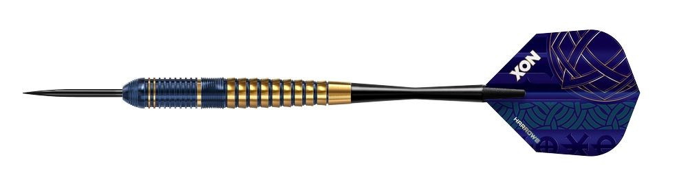 Harrows Nox este un set elegant de sageti darts din alama, conceput pentru a oferi echilibrul perfect intre aderenta, control si stil. Corpul paralel, complet frezat, asigura o prindere precisa si o directie stabila, in timp ce finisajul bicolor albastru regal–auriu adauga un aspect premium si vizibil in orice competitie.