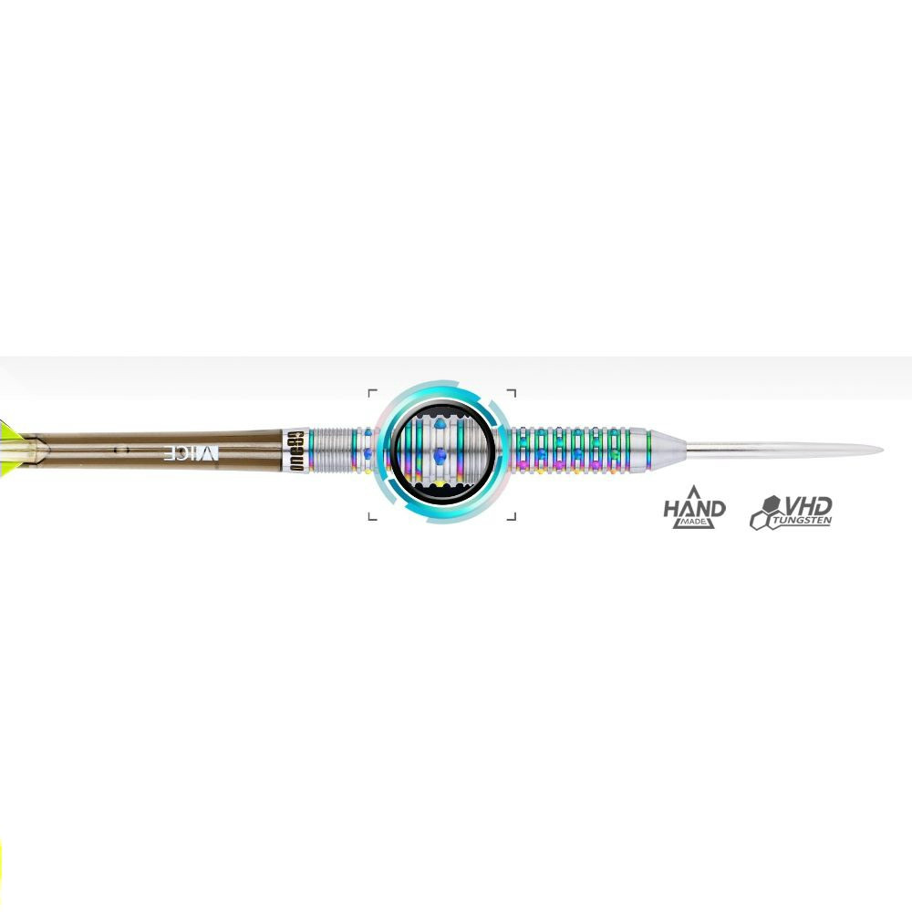 Sageti Darts Steel ONE80 Chameleon Azurite 24g Tungsten 90% sageti profesionale omogene cu corp cu striati inelare si tip pixel, care ofera una dintre cele mai bune senzatii de aderenta.Schimbatorul de culoare inspirat de Chameleon Suprafata este un design unic si frumos pentru setul dvs. cu performante excelente. lungime corp: 6,50 mm lungime corp : 53,50 mm greutatea corpului: 24 grame contine tungsten : 90% Categoria: Profesional culoare: Agrintiu, Tije: Vice lung (48mm) Tije plastic, transparent gri 1 set Vice lung (48mm) Tije plastic, transparent mov 1 set fluturasi: One80 Chameleon verde-negru , 100 micron Varf: Agrintiu,lungime normala Sageti 3 bucati. Set varturi de otel pentru borduri traditionale din hartie presata si canepa sisal.