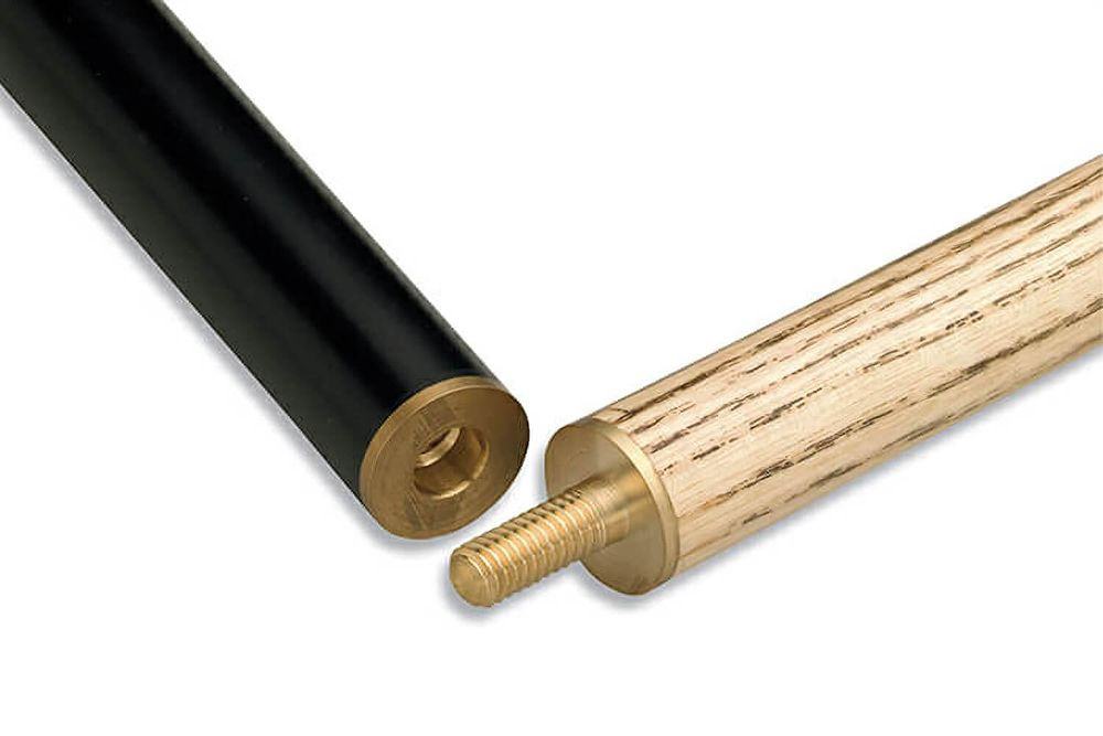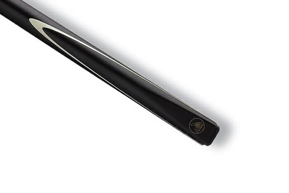 Tac de snooker din lemn de frasin nord-american, prevazut cu conector cu surub din cupru. Partea de jos vopsita in negru mat este decorata cu o dunga subtire alba.