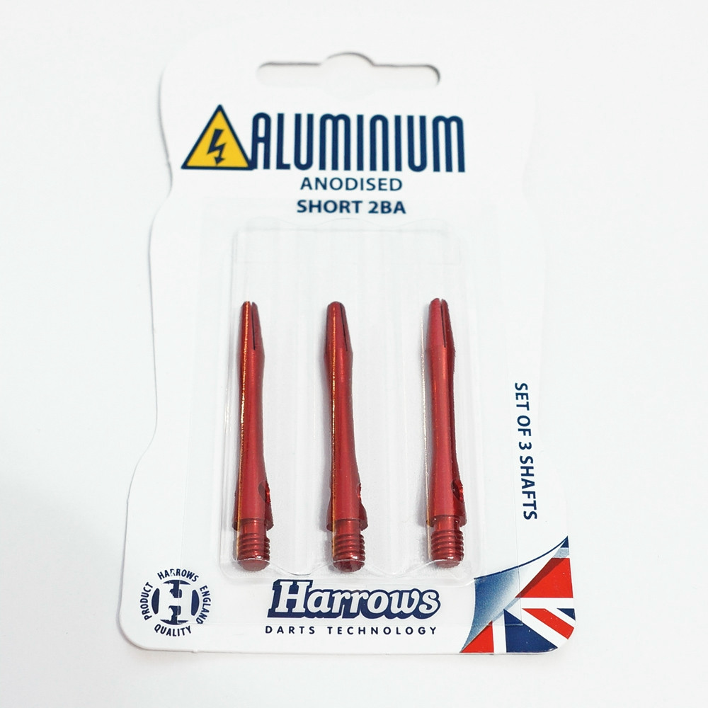 Tija darts Harrows Anodised aluminium rosu, scurt Aluminiu cu filet normal 2BA. – Lungime: 37,5 mm – Culoare: rosu - Pachetul contine 3 tije darts!