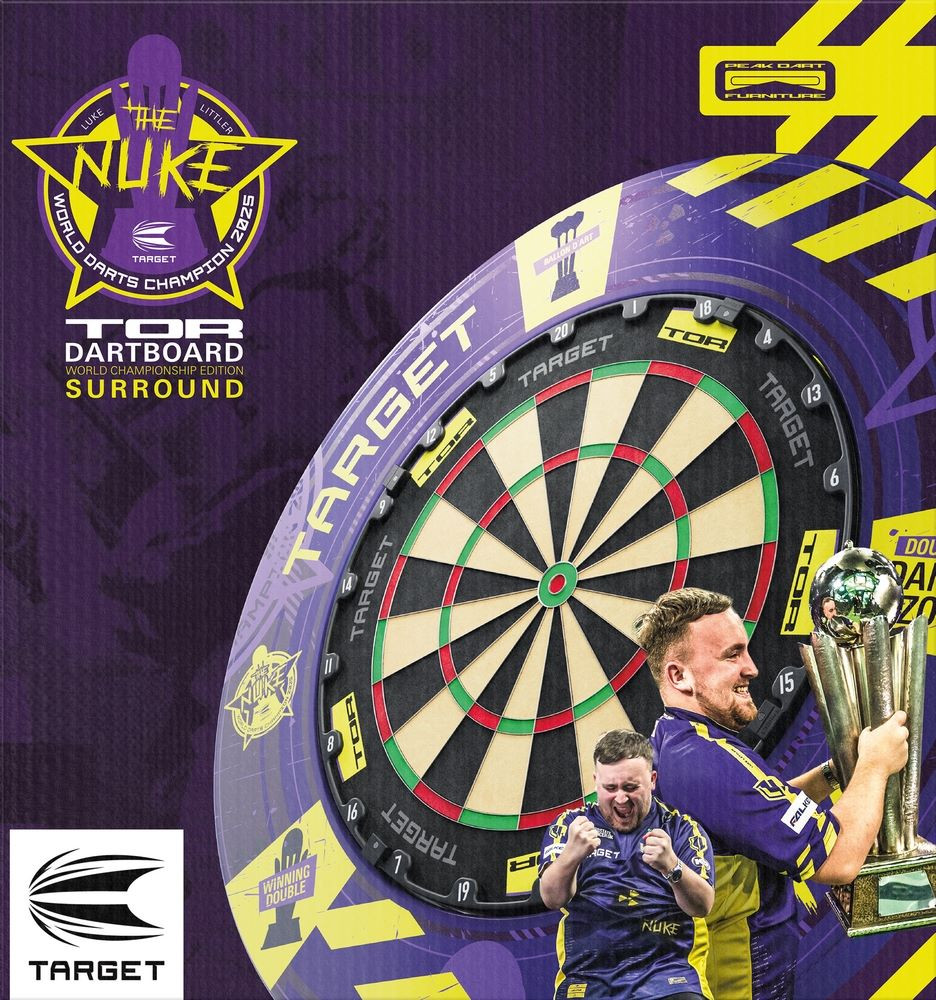 tinta TOR cu protectie de perete – editie dedicata lui Luke Littler! Dupa victoria istorica la Campionatul Mondial PDC 2025, Luke a devenit cel mai tanar campion mondial din toate timpurile si detinatorul recordului pentru cele mai multe 180-uri intr-un singur an calendaristic.