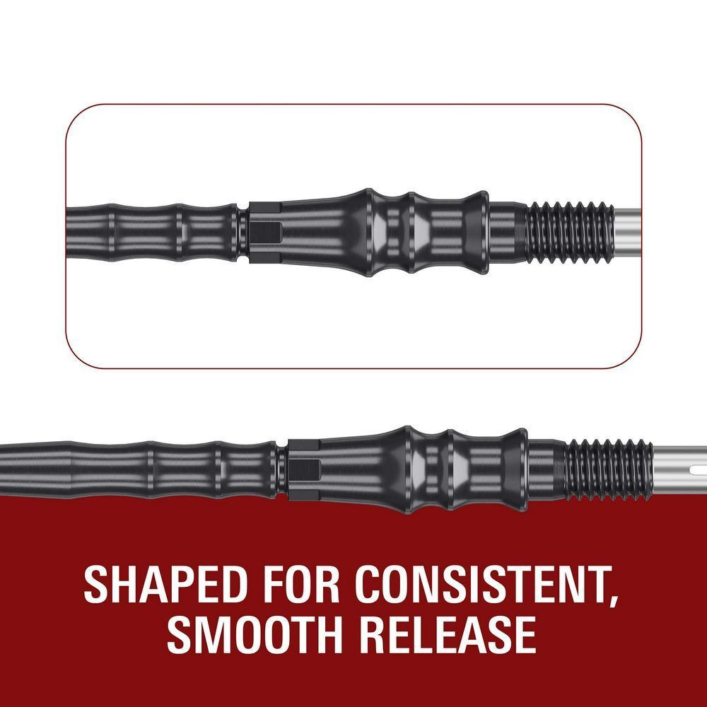 Profilul imbunatatit se imbina perfect cu corpul sagetii, reducand deteriorarea fluturasilor si oferind un zbor constant. Sectiunea frontala include santuri rotunjite ideale pentru jucatorii cu priza frontala, iar partea din spate are trei santuri fine tip „shark”, pentru control excelent si pozitionare precisa a degetelor.