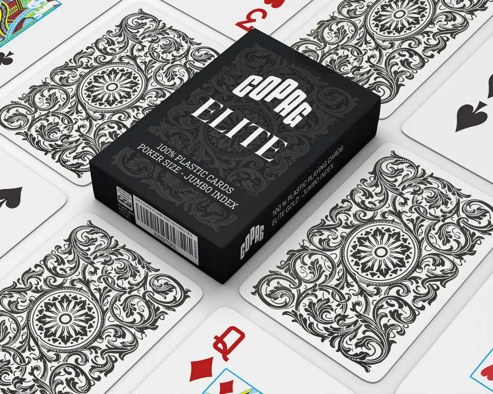 Copag Elite contin cele mai populare stiluri utilizate atat in salile de joc, cat si acasa. Ca intotdeauna, aceste carti sunt fabricate din 100% plastic – durabile, lavabile si cu o durata de viata extrem de lunga.