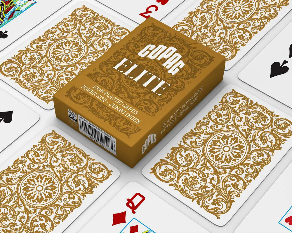 Carti de poker 100% plastic, Copag Elite Poker Jumbo, cu numere mari si spate auriu