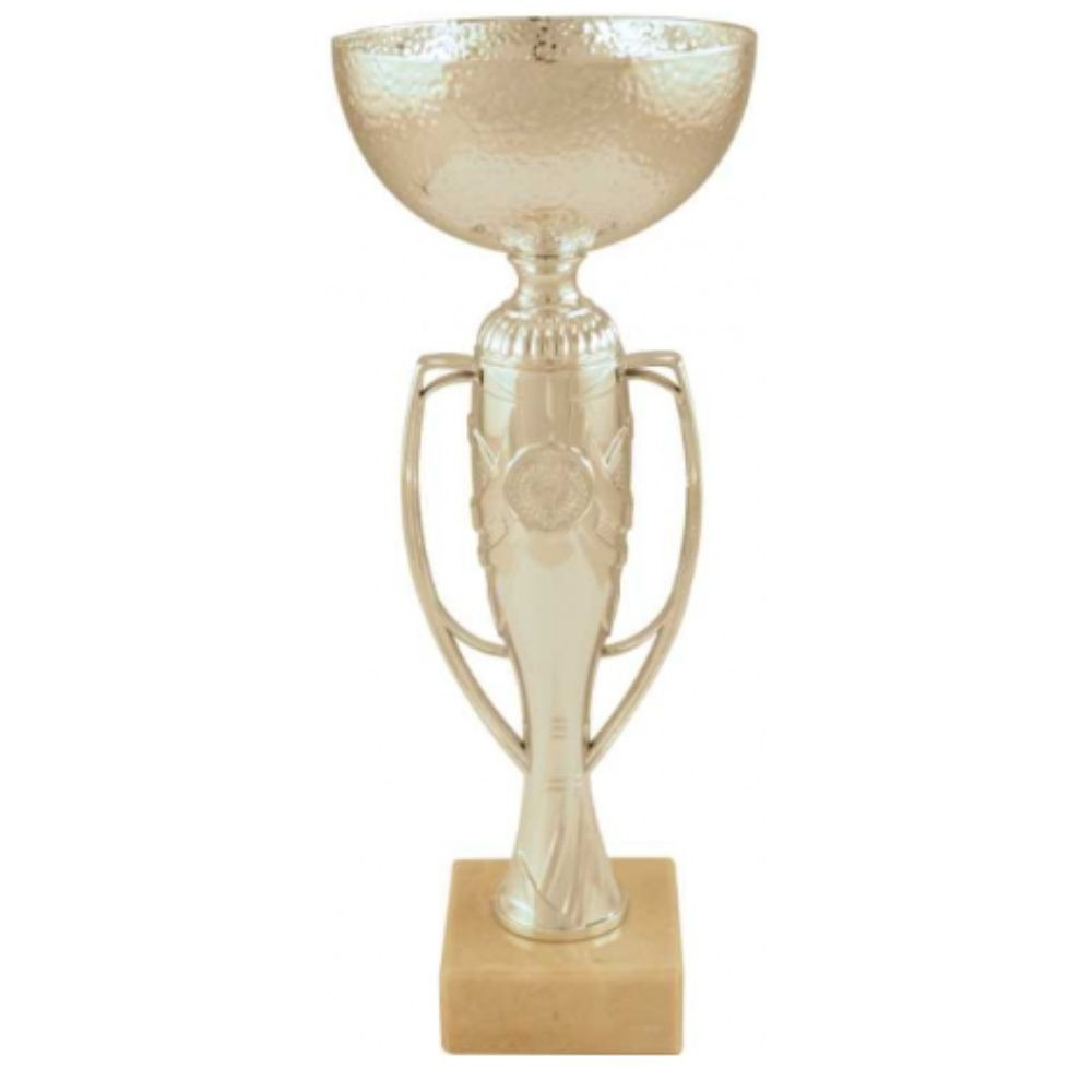 Trofeu darts cu manere, pe baza de marmura, culoare argintie, inaltime 29,5 cm