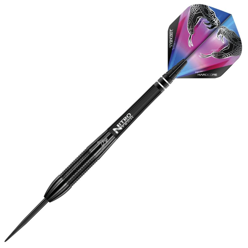 Sageti darts RedDragon steel Peter Wright Snakebite 3 negru 26 gram 90% tungsten seturi competitional folosit de Peter Wrigth in PDC Premier League. Dupa Campionatele Mondiale PDC din 2014 au fost modificate , si asa sa nascut si asa sa nascut si o versiune de 26 de grame.90% tungsten-nichel plin varf de sageata profesional cu , tija din plastic negru, fluturasi 2 modele si filet 2BA.Toate sagetile Snakebite sunt fabricate cu 0,1 grame de precizie la greutate, care garanteaza precizia. grosime corp: 7,9 mm Lungime corp: 40,6 mm Greutate corp: 26 grame tungsten contine : 90 % Categorie: Nivel profesional competitiv Culoare: negru Tija: 1 seturi x Nitro Tech Tija Lunga plastic negru Fluturasi: 2 seturi Players extra gros Fluturasi seturi 3 buc sageti.Nu se poate acorda reducere. Nici pentru revanzatori si nici jucatorilor. a se folosi dor la borduri pt sageti steel. La aparete electrice cauzeaza distrugeri nereparabile.