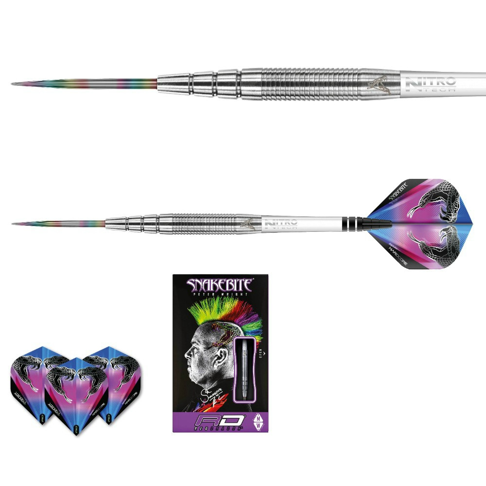 Sageti darts RedDragon steel Peter Wright Snakebite PL15, 22 gram 90% tungsten Peter Wright o replica a setului de competitie.Aceasta versiune este succesorul Snakebite 2 din bronz din 2014, care este usor mai subtire si se curbeaza spre interior in partea din fata a corpului.calitate premium, 90% tungsten cu varful sagetii Profesional. grosime corp: 4,8-6,7 mm Lungime corp: 50,8 mm Greutate corp: 22 grame tungsten contine : 90% premiu Categorie: Profi Culoare: argintiu Tija: 1 set Nitro Tech Tija plastic Fluturasi: 1 set Players extra gros Fluturasi set 3 buc sageti.Nu se poate acorda reducere. Nici pentru revanzatori si nici jucatorilor. a se folosi dor la borduri pt sageti steel. La aparete electrice cauzeaza distrugeri nereparabile.