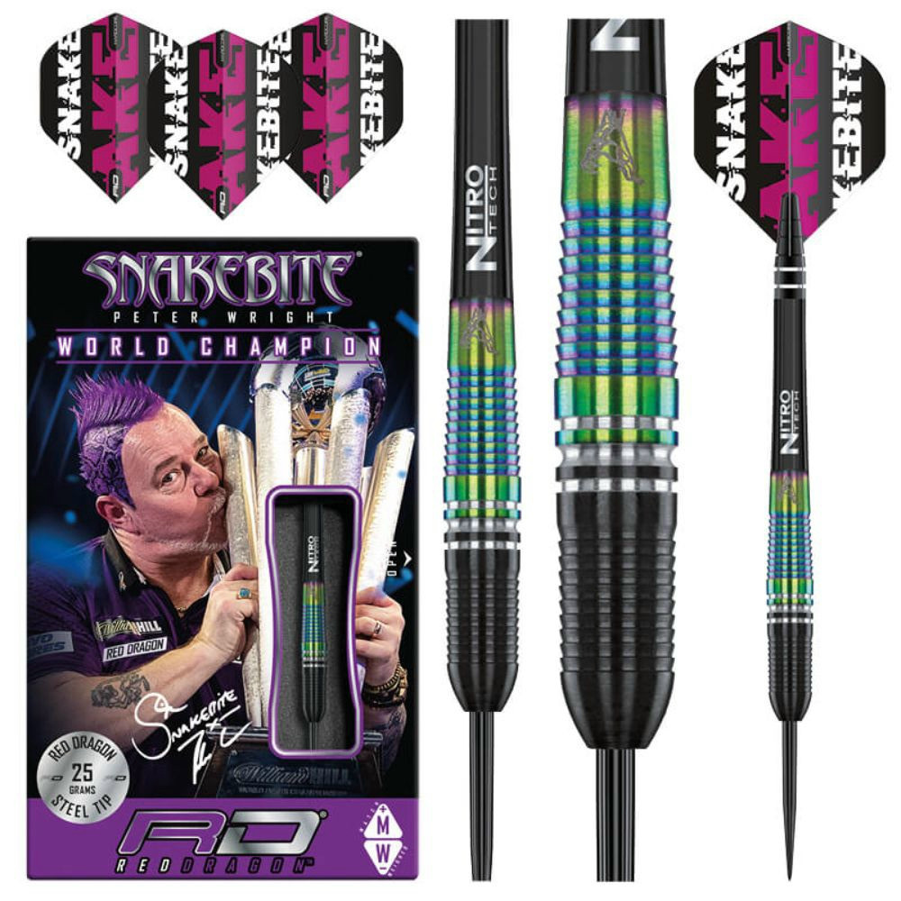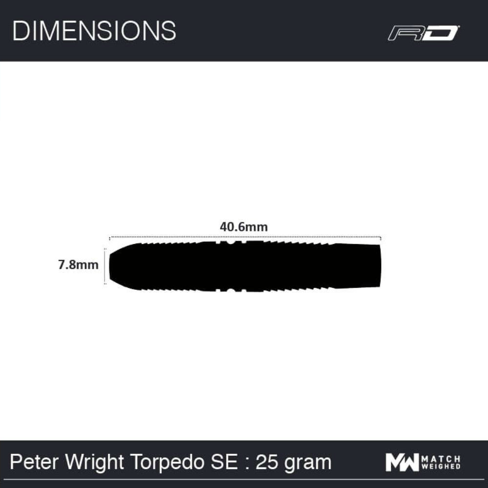 Sageti darts RedDragon steel Peter Wright World Champion Torpedo SE 90% tungsten, 25g grosime corp: 7,8 mm Lungime corp: 40,6 mm Greutate corp: 25 grame tungsten contine : 90% Categorie: Profi Culoare: argintiu Tija: Nitrotech polycarbonate mediu Fluturasi: Hardcore extra gros standard varf: neted, argintiu Culoare Lungime normala contine 3 buc sageti cu varf otel standard- fabricate pentru borduri din hartie presata si fibre de canepa.Nu se poate acorda reducere, nici pentru revanzatori si nici jucatorilor legitimati.