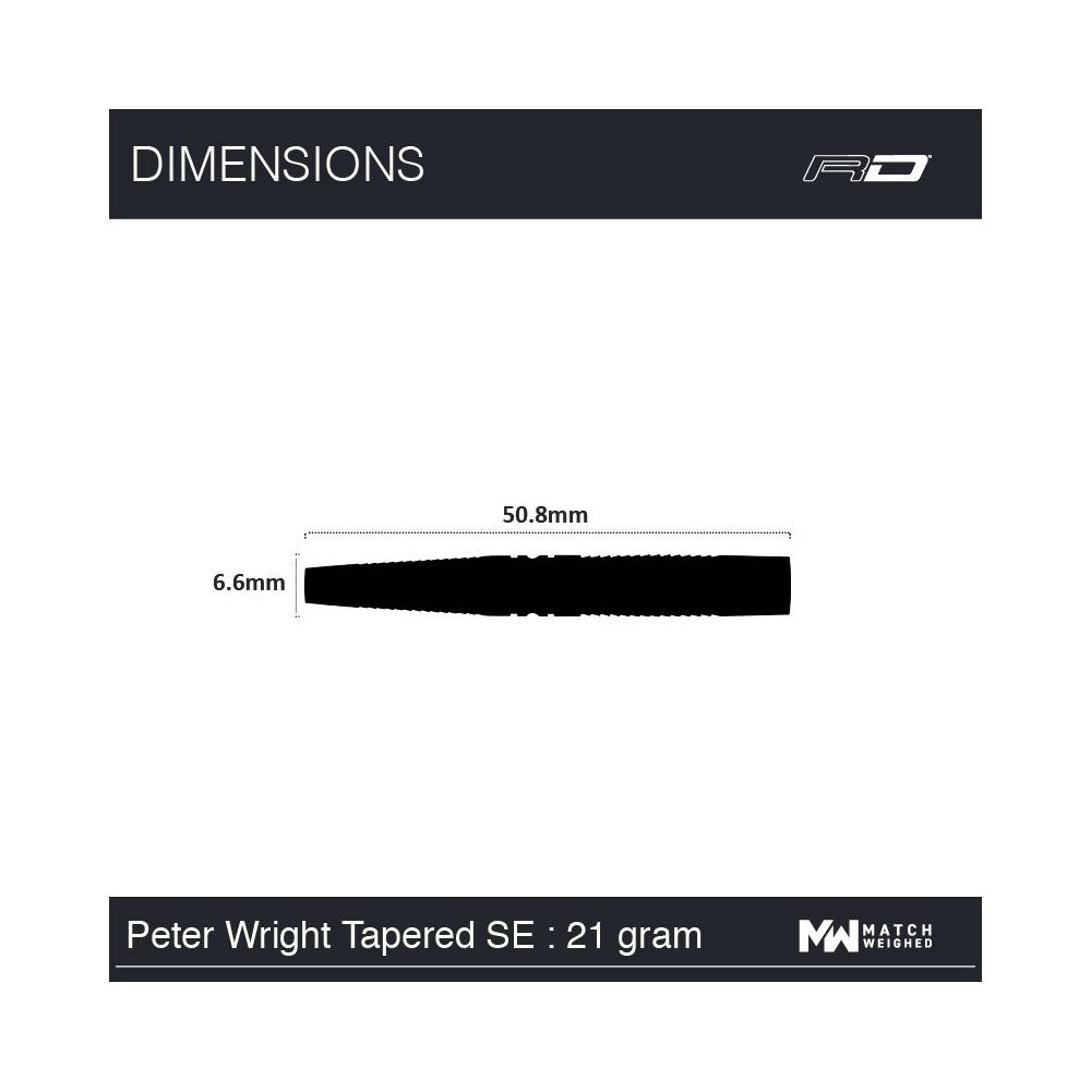 Sageti Darts RedDragon steel Peter Wright World Champion Tapered SE 90% tungsten, 21g lungime corp: 6,6 mm lungime corp : 50,8mm greutatea corpului: 21 grame Continut de tungsten: 90% Categoria: Profesional culoare: Agrintiu Tije: Nitrotech polycarbonate medi fluturasi: Hardcore extra gros standardVarf: negru lungime normala Sageti 3 bucati. Set varturi de otel pentru borduri traditionale din hartie presata si canepa sisal. La acest set nu se poate acorda extra reducere. Nici pentru revanzatori si nici pentru jucatori.