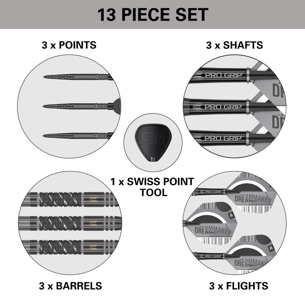 - Tehnologie Swiss Point: Target Darts a incorporat tehnologia lor revolutionara Swiss Point in aceste sageti. Swiss Points permit inlocuirea rapida si usoara a varfurilor, asigurandu-te ca sagetile tale raman in conditii perfecte.